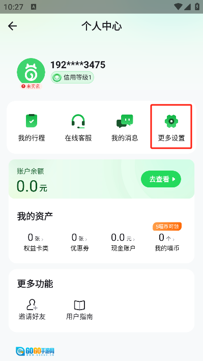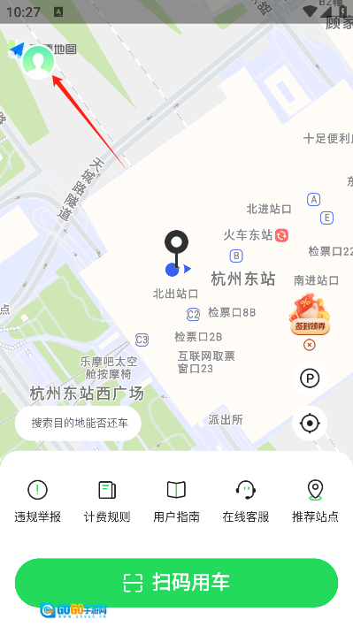 1. 第一步要打开喵走出行,点击左上角的人物头像,进入主菜单。