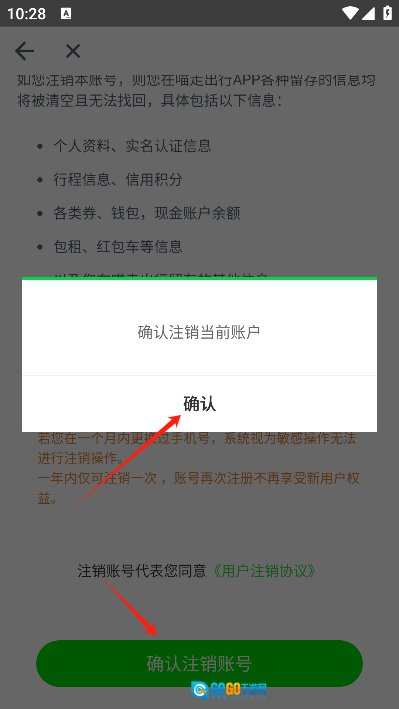 4. 点击【注销此账号】并进行首次确认注销。