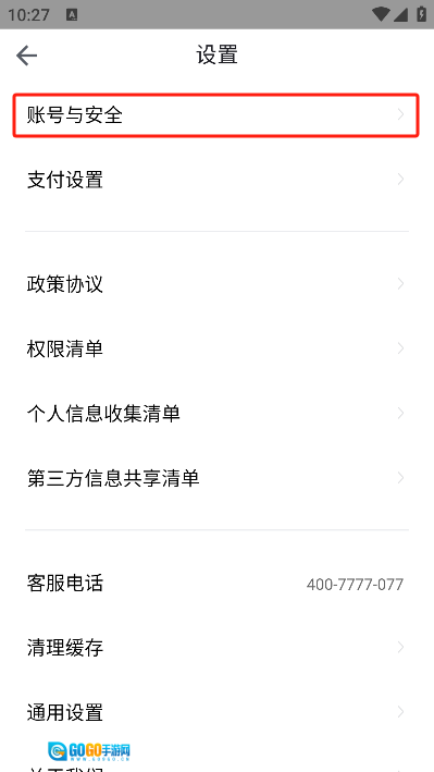 3. 在设置界面中找到并点击【账号和安全】选项。