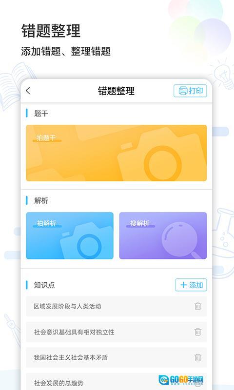 3、具备一键打印功能,用户能够随时把整理完毕的错题打印出来,便于进行离线学习与复习。