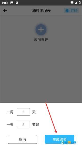 3、进入课表设置选项,先确认一周天数与一天课时数,再点击【生成课表】按钮,即可生成课程表框架。