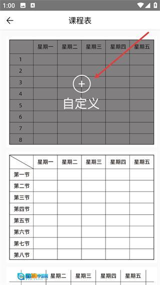 1、在课程表界面找到【自定义】区域,点击其中的“+”按钮,即可进入课程表编辑页面。