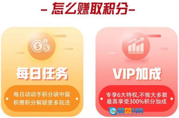 早游戏怎么赚取积分攻略1:每日打开早游戏完成签到、登录、分享、夺宝、充值等任务都可领取大量积分。攻略2:开通vip会员,解锁6大特权最高可享300%积分加成。首开会员更有6折优惠。