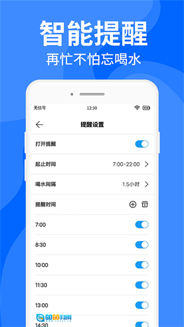 2、喝水提醒——能依据您的作息规律、喝水间隔时长等个人习惯,生成专属的提醒计划表,您还可结合自身使用偏好进一步调整,让饮水这件事变得轻松又高效。