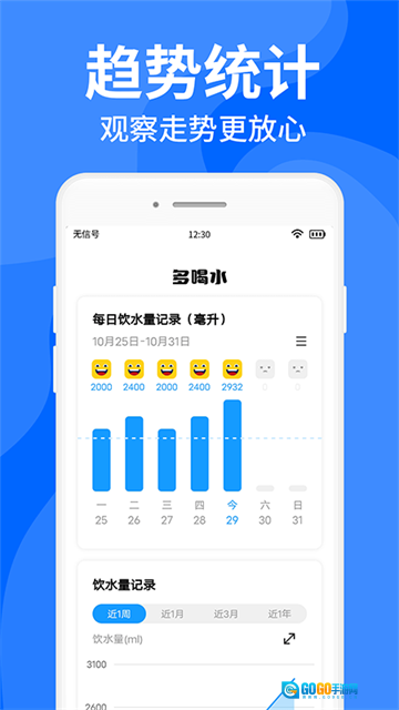 4、趋势统计 - 每日记录饮水量,实时掌握饮水情况,科学制定每日饮水计划