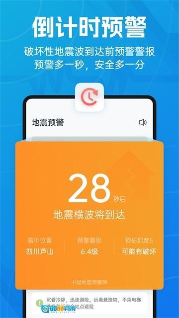 2、支持依据预警信息执行倒计时操作,并通过声音或震动发出警报,以此提示用户及时采取正确的地震避险举措