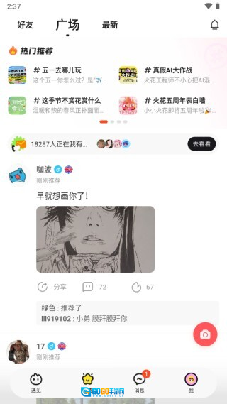 可以查看其他用户发布的动态,或是查看一些热门话题