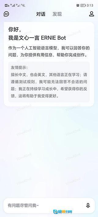 进入软件内部后,能看到“对话”和“发现”两个栏目。