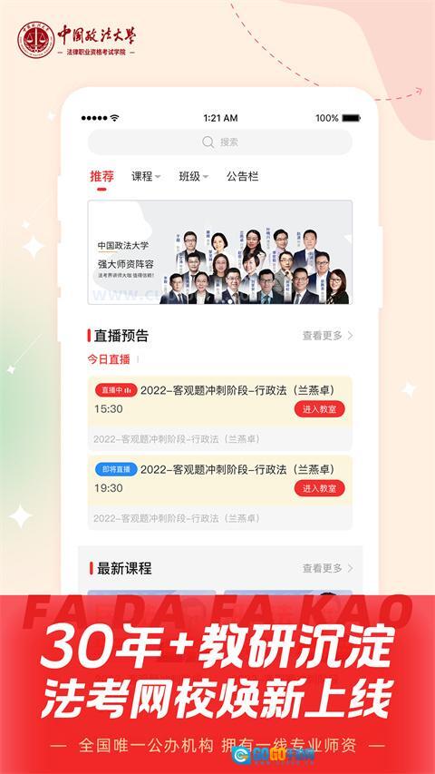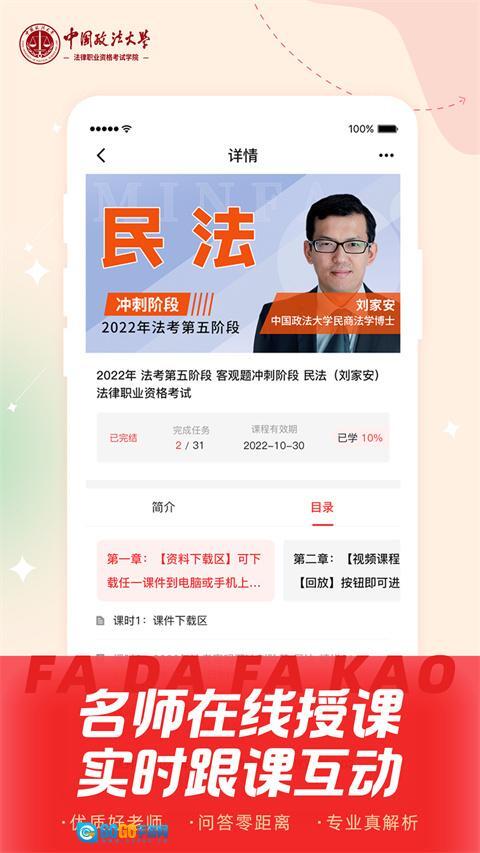 中国政法大学刘家安、杨秀清、方鹏、兰燕卓等多位副教授、教授级别的名师,将通过优质直播课程助你轻松备战法考。