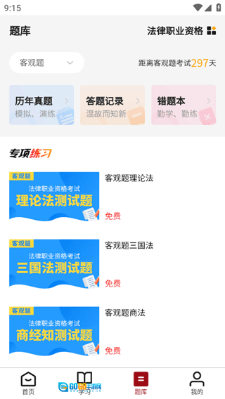 各科题库、历年真题、练习室、错题本、公告栏