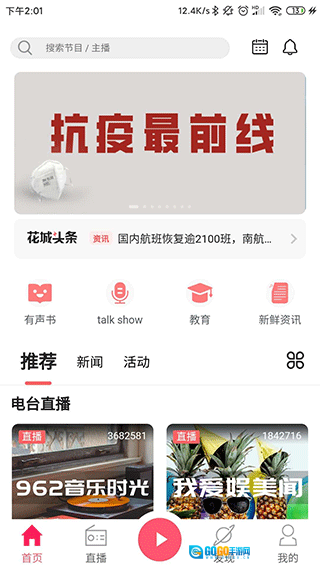 在首页可以看到推荐、新闻、活动、直播这四个板块。
