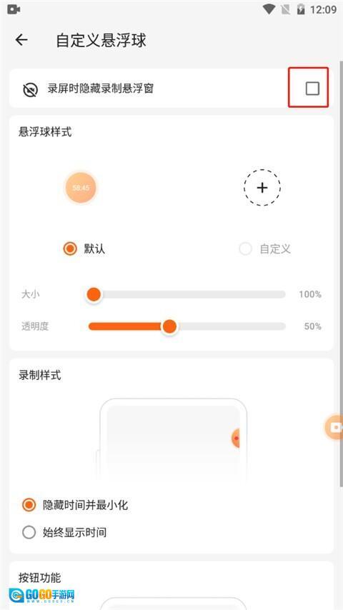 2、然后点击录屏时隐藏录制悬浮窗即可。