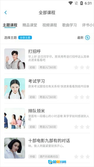 2、趣味场景课程闯关:精心编排旅游问路、逛街购物、广式美食等专题课程,还融入经典港片古惑仔系列、警匪系列等内容,从词汇、句子到对话逐步学习,闯关模式让学习更具动力。