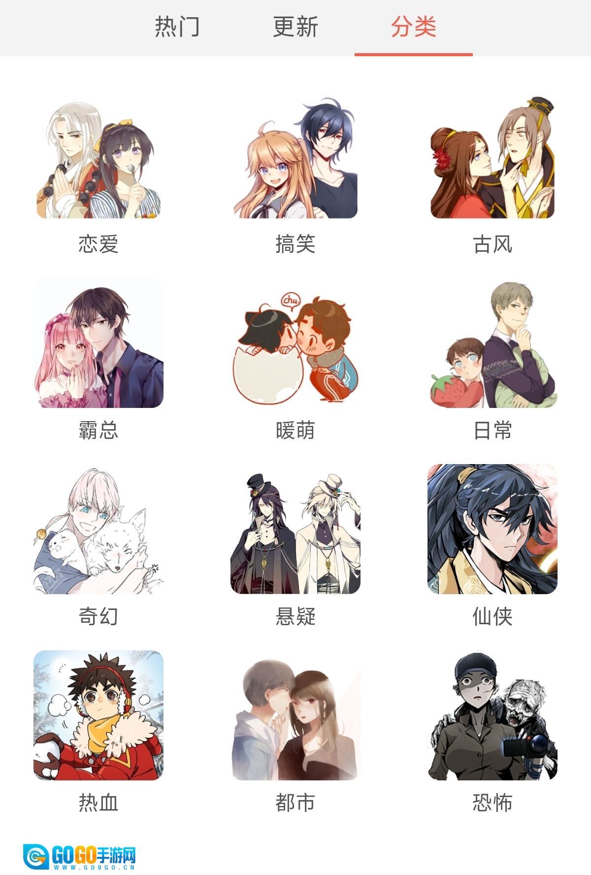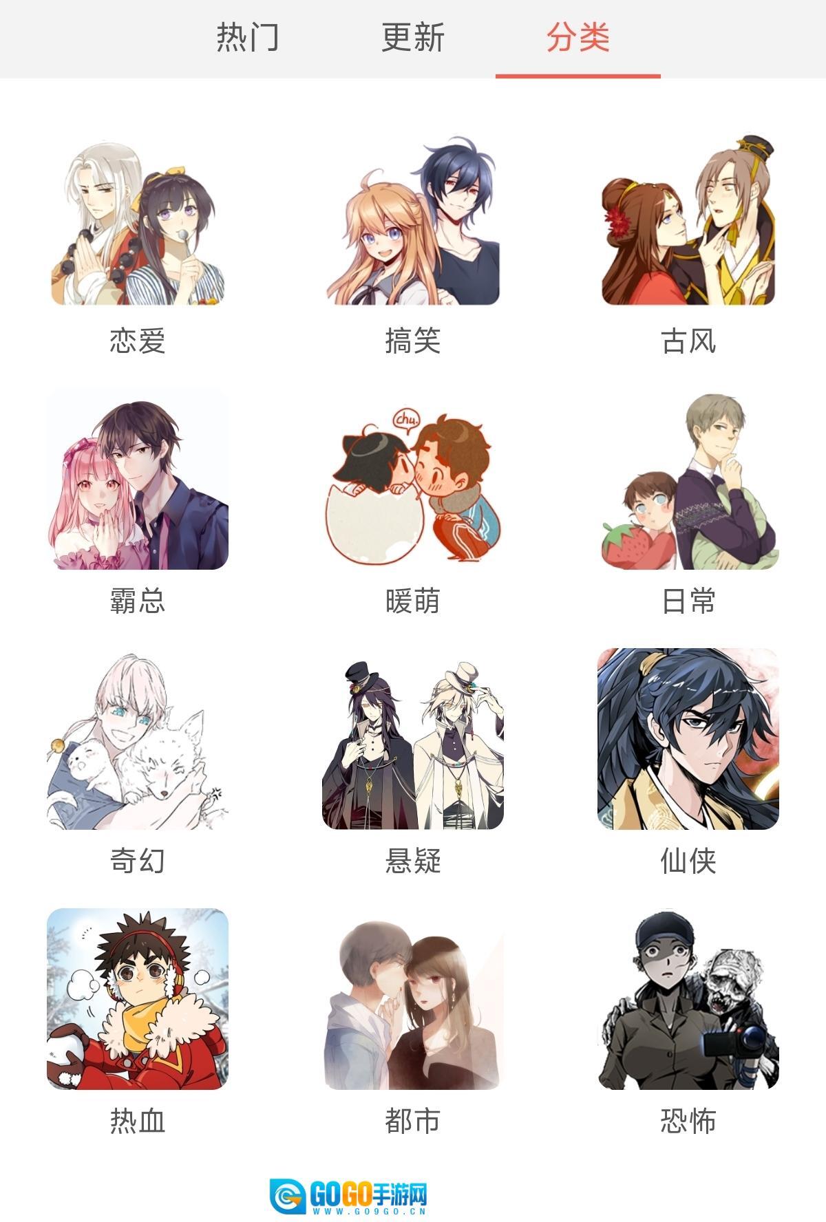 2、进入分类界面,可以筛选自己想看的漫画。