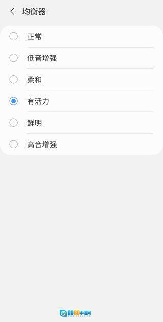 4、建议将均衡器设置为“有活力”模式;PS:搭配三星耳机时,选择“有活力”音质效果会更佳