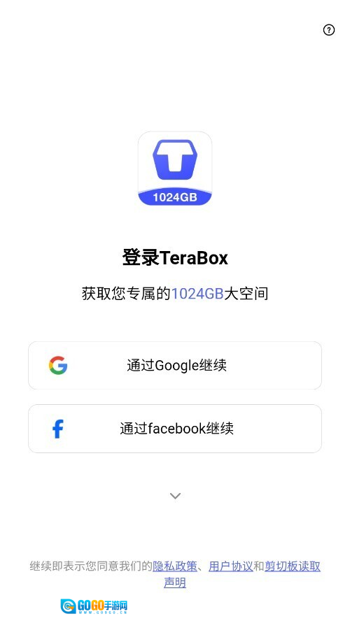 2、启动TeraBox软件,进入登录页面,挑选登录方式