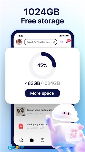 现在安装TeraBox,即可拥有1024GB云空间,还能把文档存到任意位置。