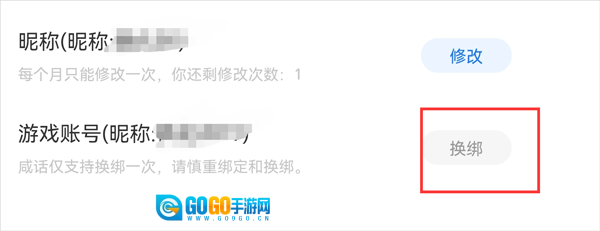 2、点击换绑按钮即可完成换绑操作(该功能仅允许换绑一次,还请谨慎进行绑定与换绑操作)