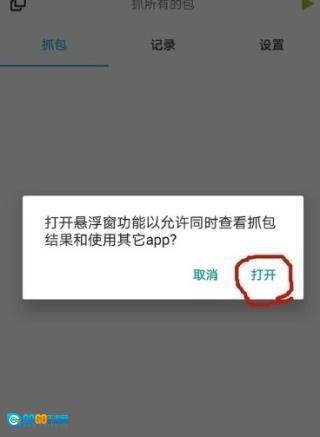 4、此时会出现提示,需要开启悬浮窗功能,这样才能同时查看抓包结果和使用其他功能。