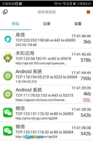 3、能够自动保存http和https请求,并且抓包精灵无需ROOT权限;