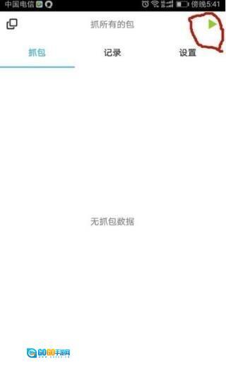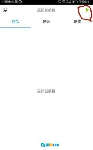 3、点击右上角的绿色三角符号,开始进行抓包。