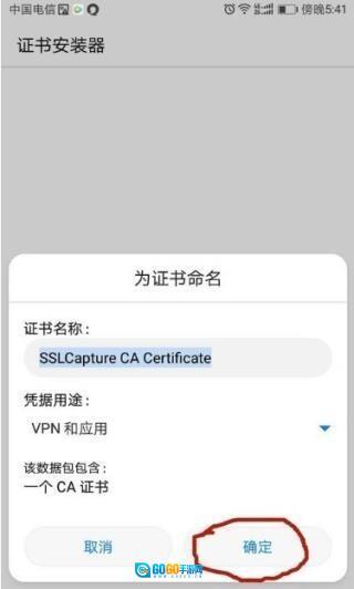 2、此时会出现安装证书的提示,你可以对证书名称进行修改,也可以选择不修改,之后点击确定按钮即可。