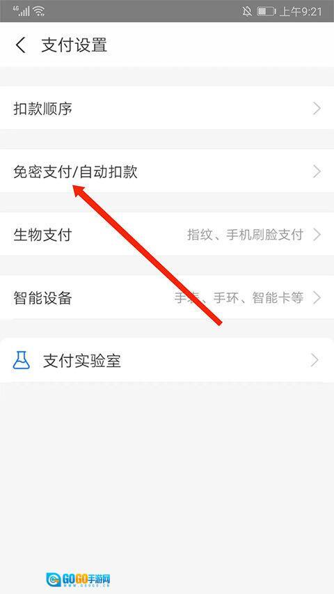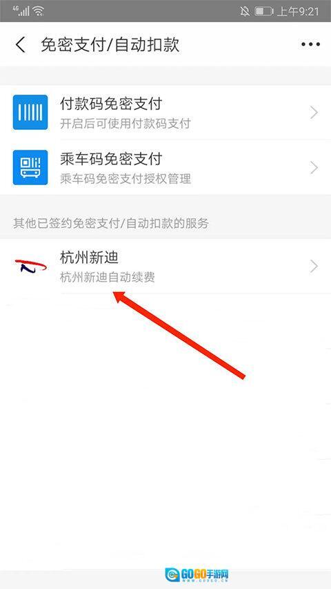 4.选择“免密支付/自动扣款”。
