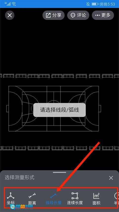 6、选取线段/弧线后,即可显示测量数据。