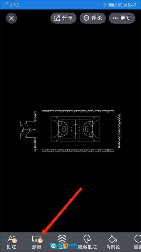 4、进入图纸界面,选择下方“测量”选项。