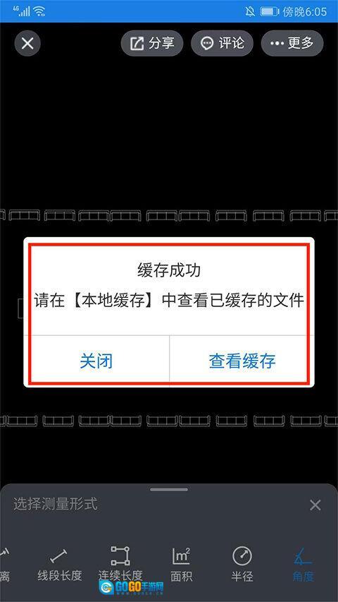 编辑完成后,点击右上角的“更多”按钮,然后选择“缓存图纸”选项。