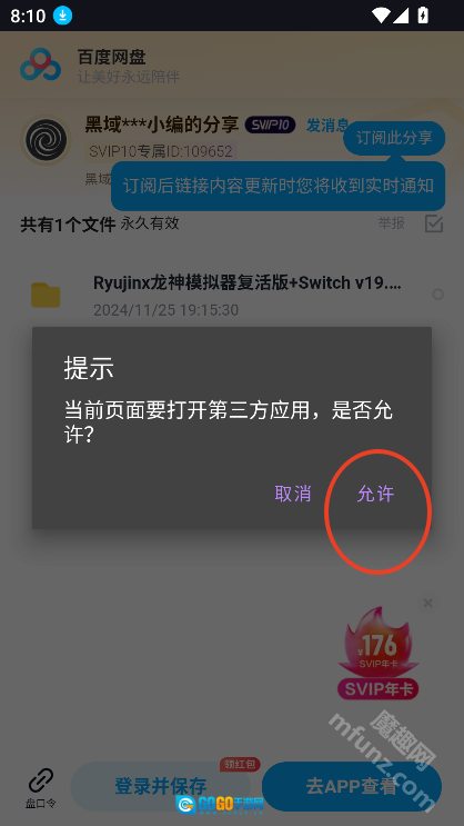 6、点击,即可跳转到第三方网盘进行,点击允许即可
