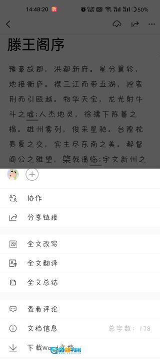 5、然后点击右上角的三个点,可以进行全文改写、翻译、总结等。