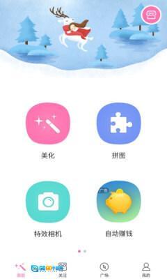 1、打开百度魔图后,在首页就能使用美化、拼图、相机等功能。