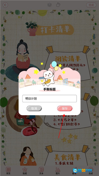 编辑好内容后,点击右上角的【完成】按钮,接着输入手账标题,再点击【保存】即可。