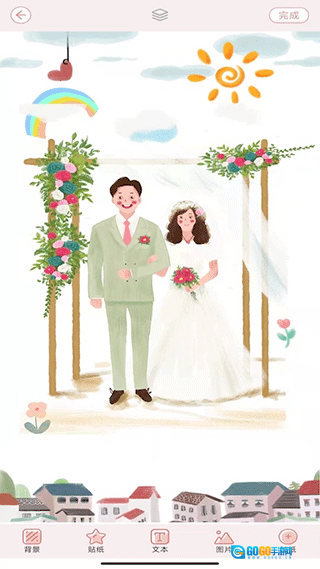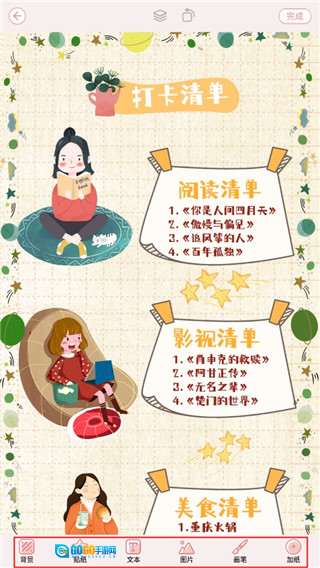 3、可自由设置背景、贴纸等多项功能,即便选用现有模板,也能随意进行更改。