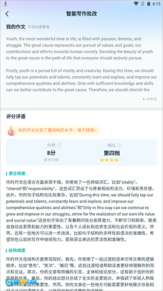 5、最后完成批改后就能查看评语、分数、和档位等。
