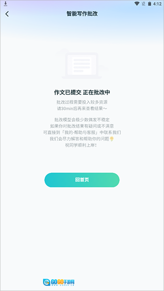4、点击右上角"提交"后,等待智能批改即可。
