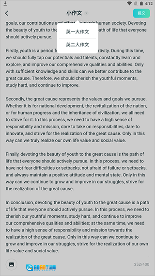 目前作文批改仅支持英语,其他语言暂不支持提交批改。