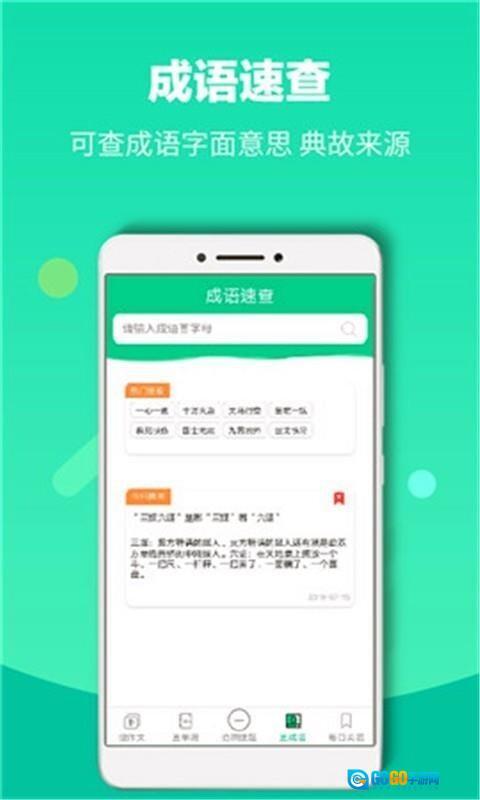 1、为用户配备成语快速查询功能模块,支持查询成语的字面含义与典故出处。