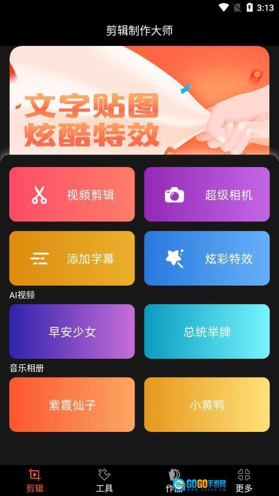 1、剪辑制作大师这款软件能让用户一键轻松完成视频制作,操作起来十分便捷。