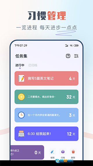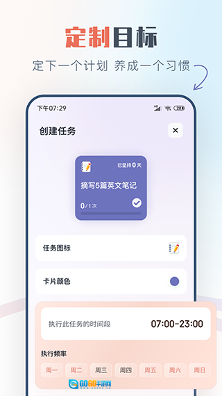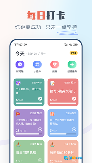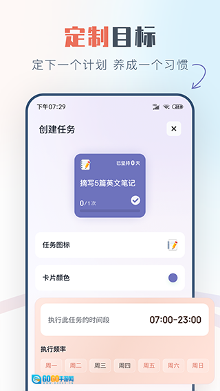 【每日打卡】定制专属计划,准时达成目标,养成时间管理的好习惯。