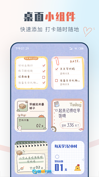 【小组件】一键添加桌面小组件,随时随地打卡。