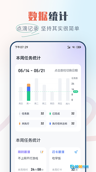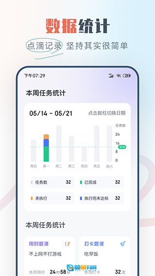 【数据追踪】通过多维度的数据展示,清晰掌握目标的坚持过程与完成状态。