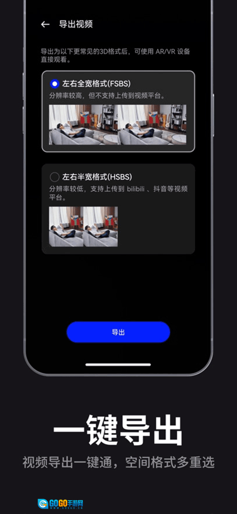 5、3D格式导出便捷:可将空间视频与转换后的空间照片导出为常用3D格式,以满足用户在不同平台分享的需求。