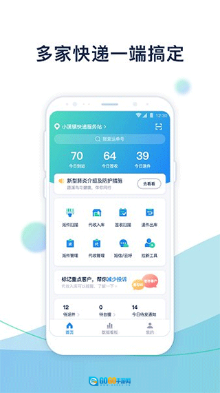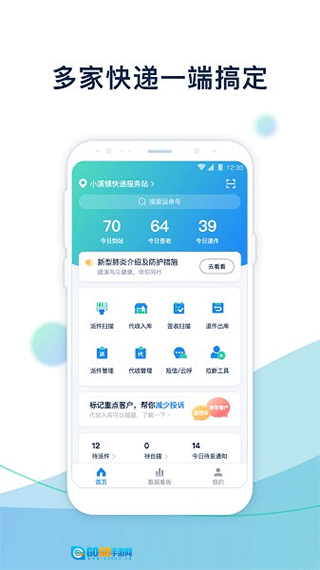 1、【派件扫描】具备批量扫描运单号的功能,能够自动识别快递公司信息与特殊运单,并同步更新物流路由信息。