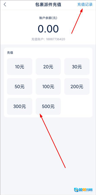 在充值页面,除了可以给包裹派件进行充值外,还能够查看详细的充值记录。