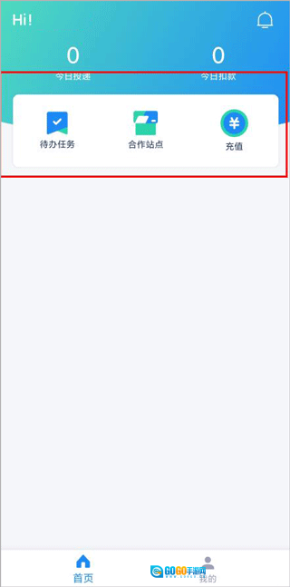 1. 打开溪鸟App后,在首页就能看到待办任务、合作站点以及充值相关信息。