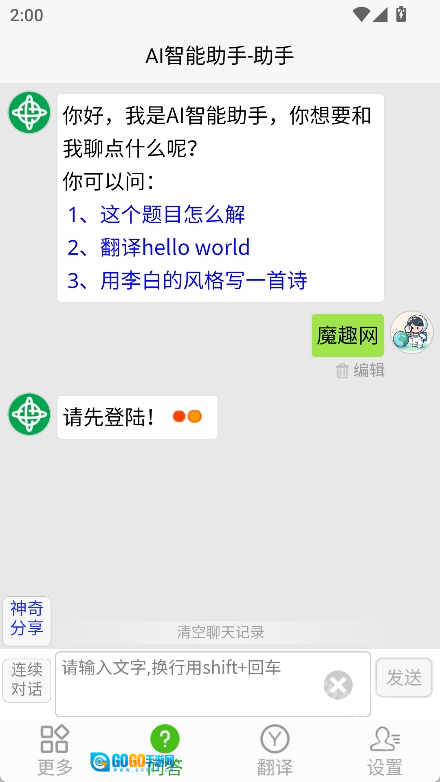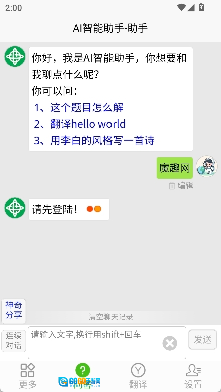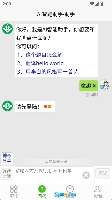 AI智能助手是一款十分懂你的多功能智能对话互动交流工具。该工具融入了先进的AI人工智能技术,可提供多方面服务。无论是解答问题、创作文章还是翻译语言,AI智能助手都能迅速为你完成。它还具备不断进化的能力,能为你带来更智能、更便捷的使用体验!