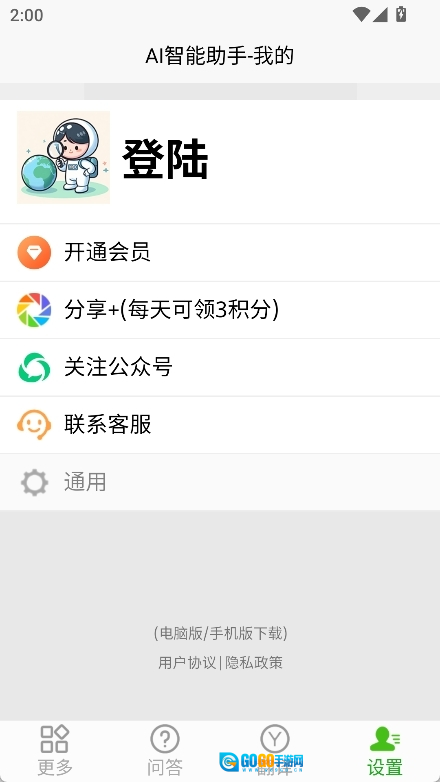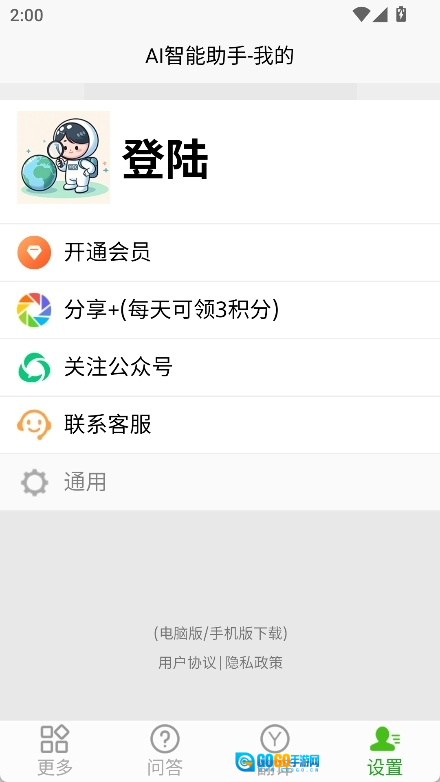 AI智能助手整合了聊天问答、绘图、翻译、写作等多种功能模块。