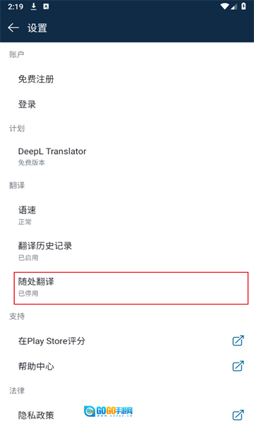 3、该软件具备随处翻译功能,可在其他应用程序里直接使用,无需复制粘贴文本,翻译过程更为快捷。点击界面右上方的设置按钮,即可进入相关设置页面。